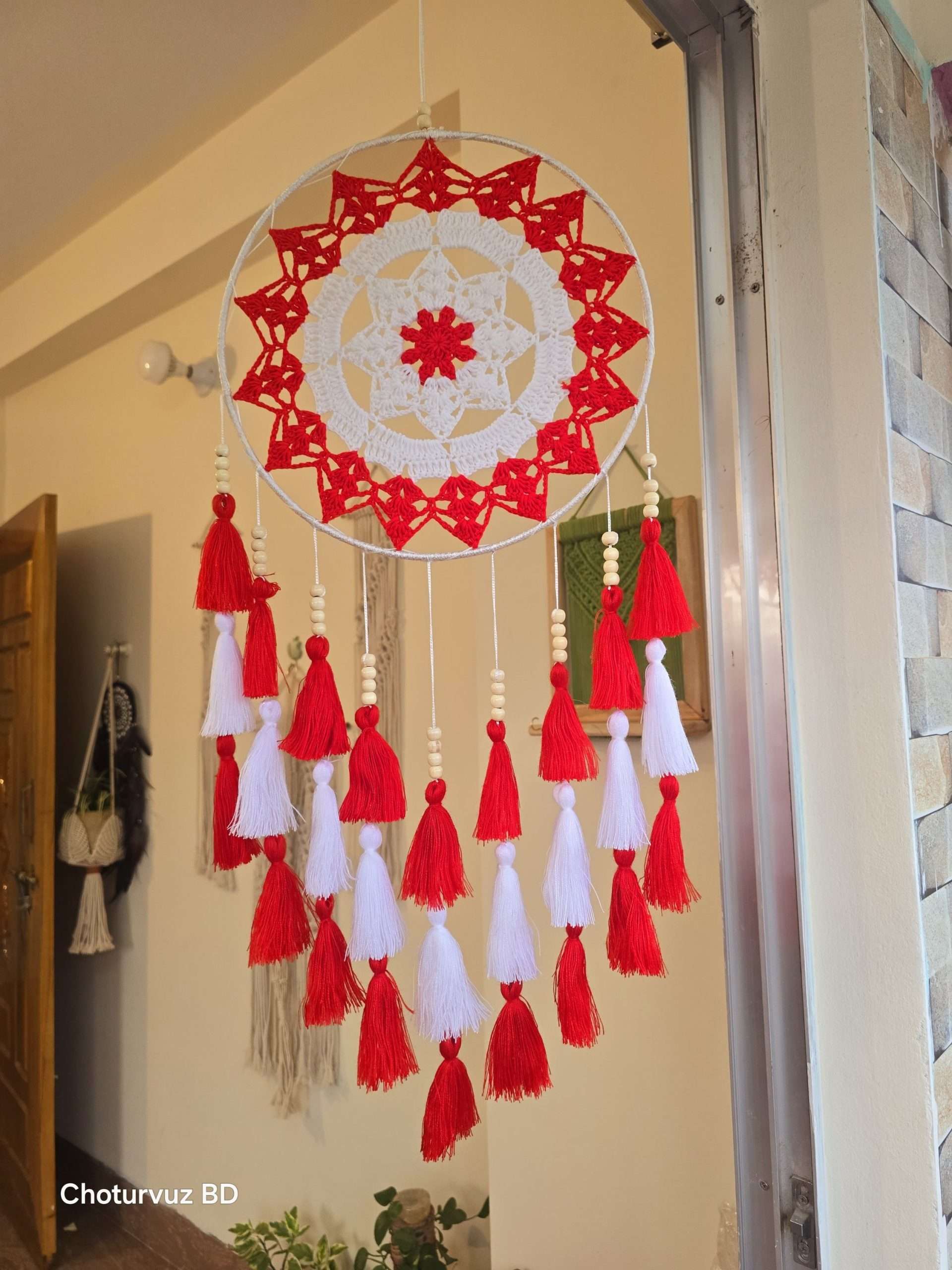 Crafted by skilled Crafters of “Choturvuz”. We can provide any colour and design of dream catchers. Its totally washable and easy to hang Dream catcher.