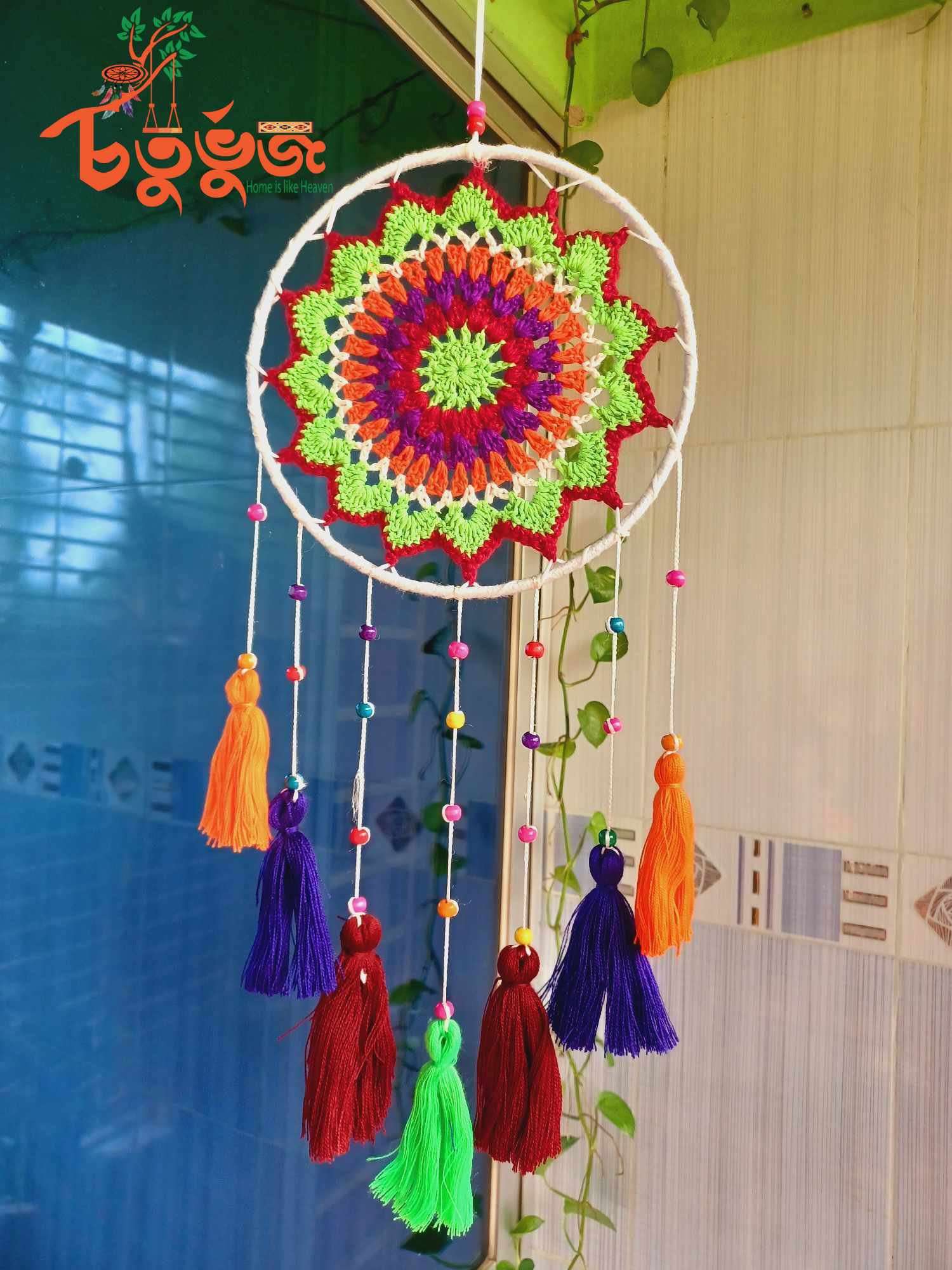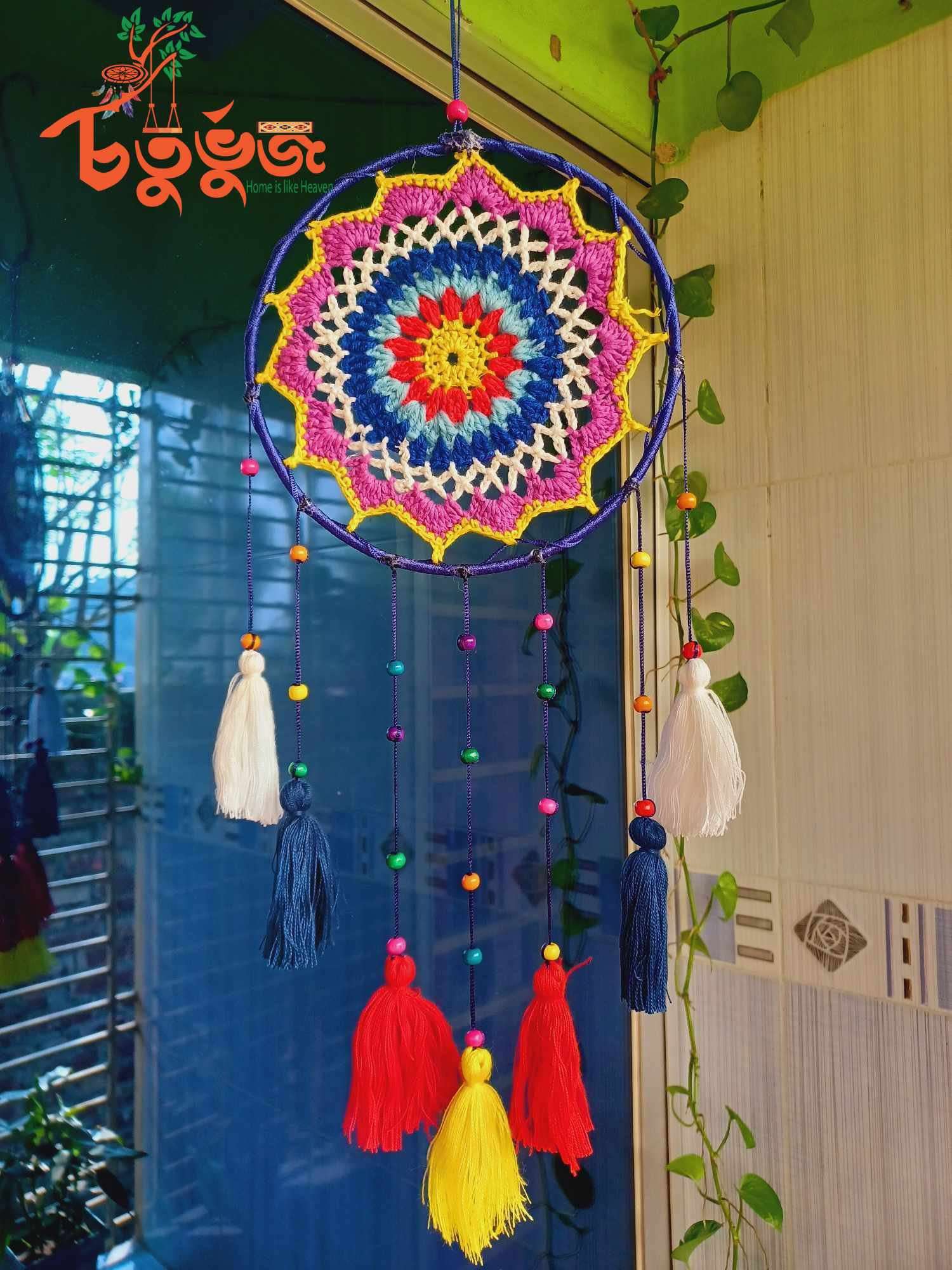 Crafted by skilled Crafters of “Choturvuz”. We can provide any colour and design of dream catchers. Its totally washable and easy to hang