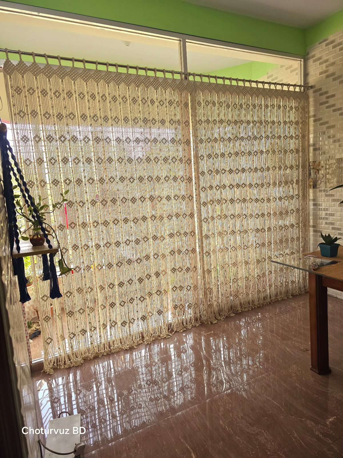 Macrame curtain.