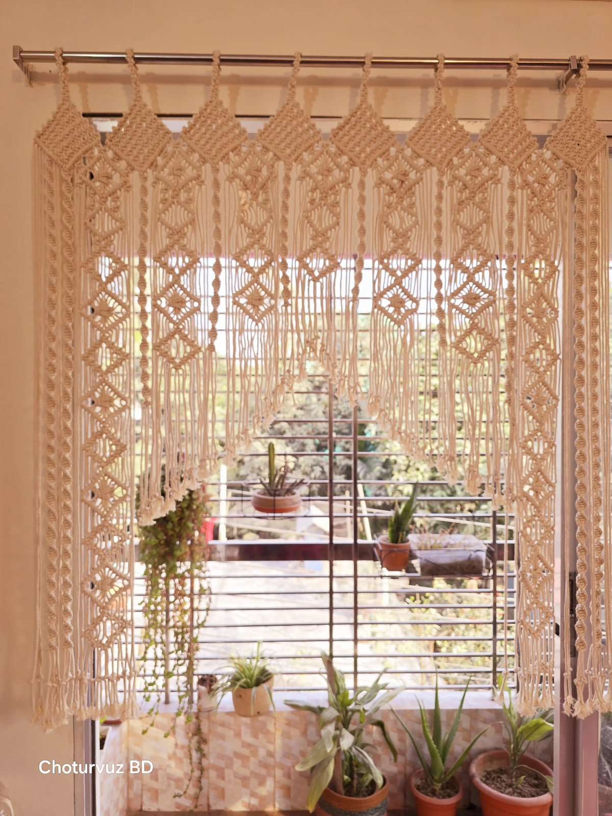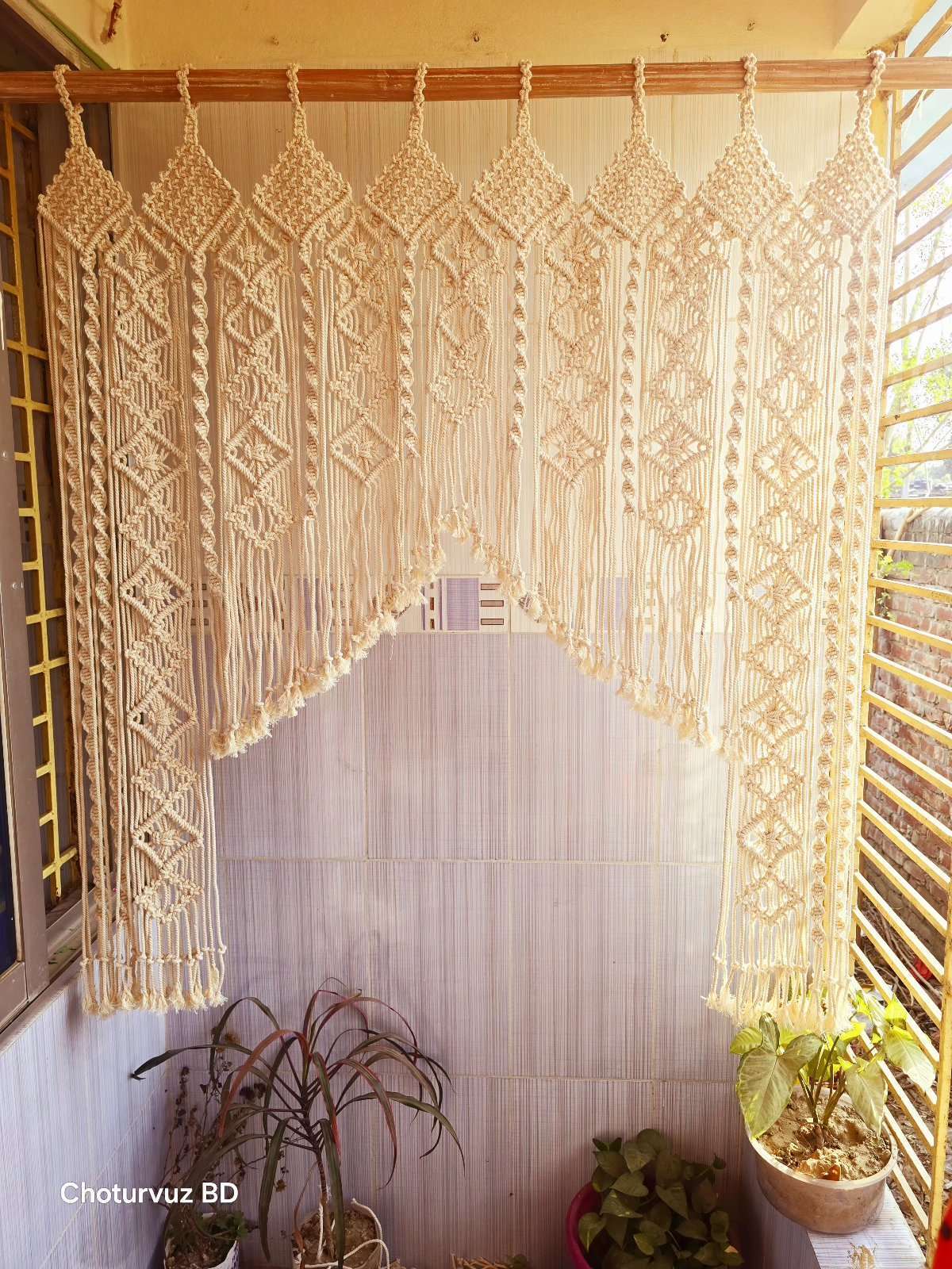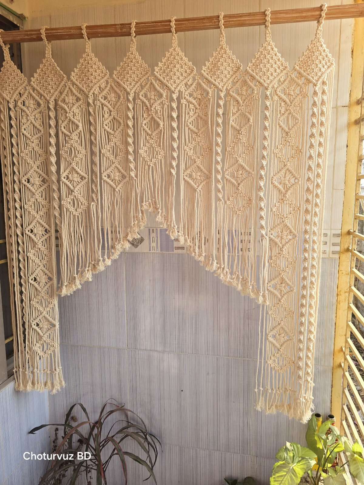 Macrame curtain.