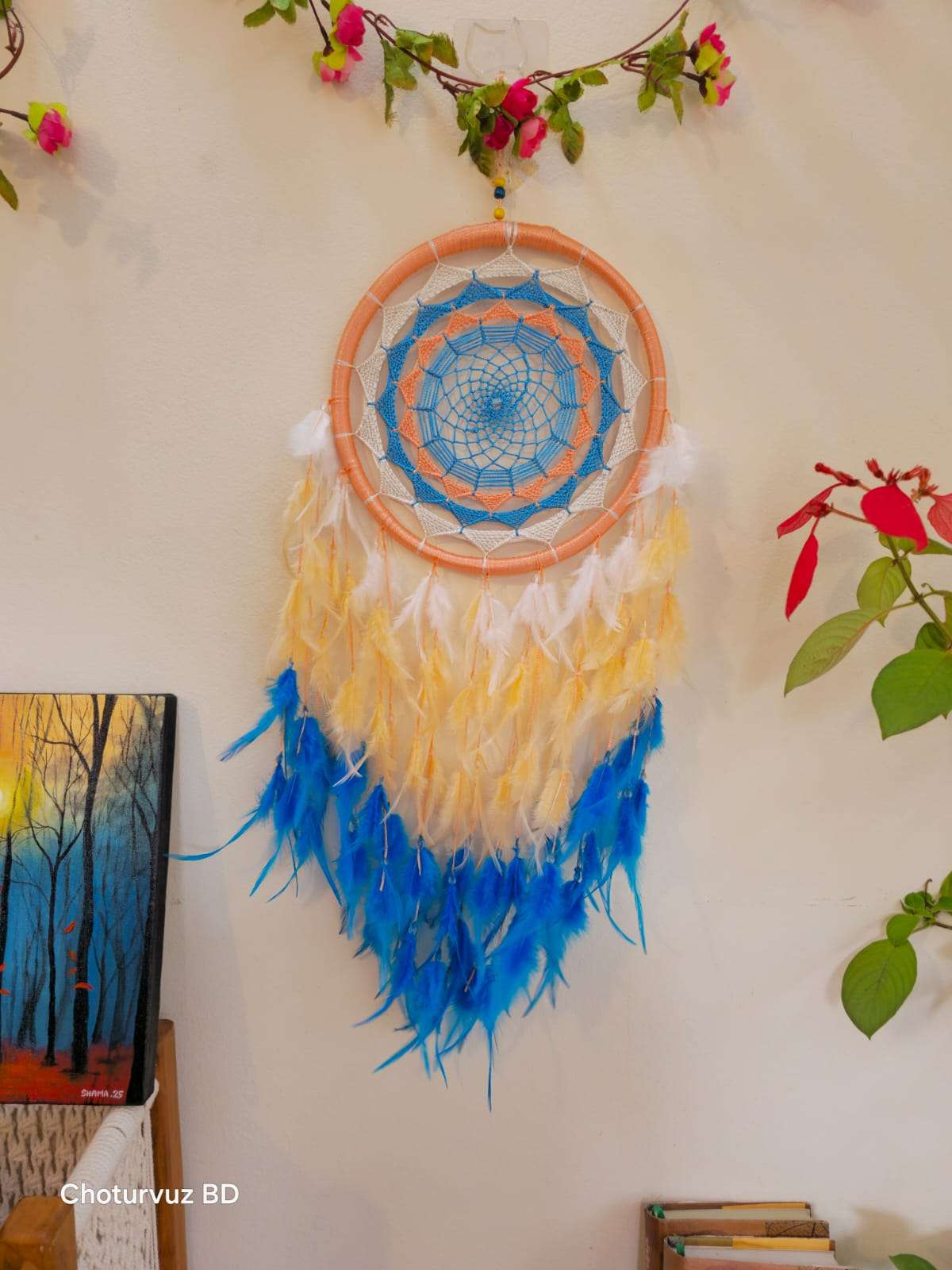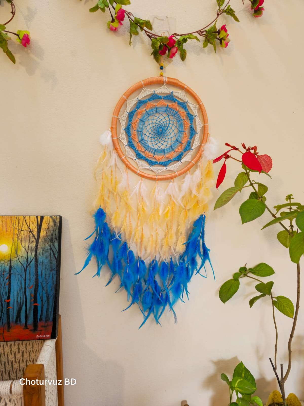 Crafted by skilled Crafters of “Choturvuz”. We can provide any colour and design of dream catchers. Its totally washable and easy to hang Dream catcher.