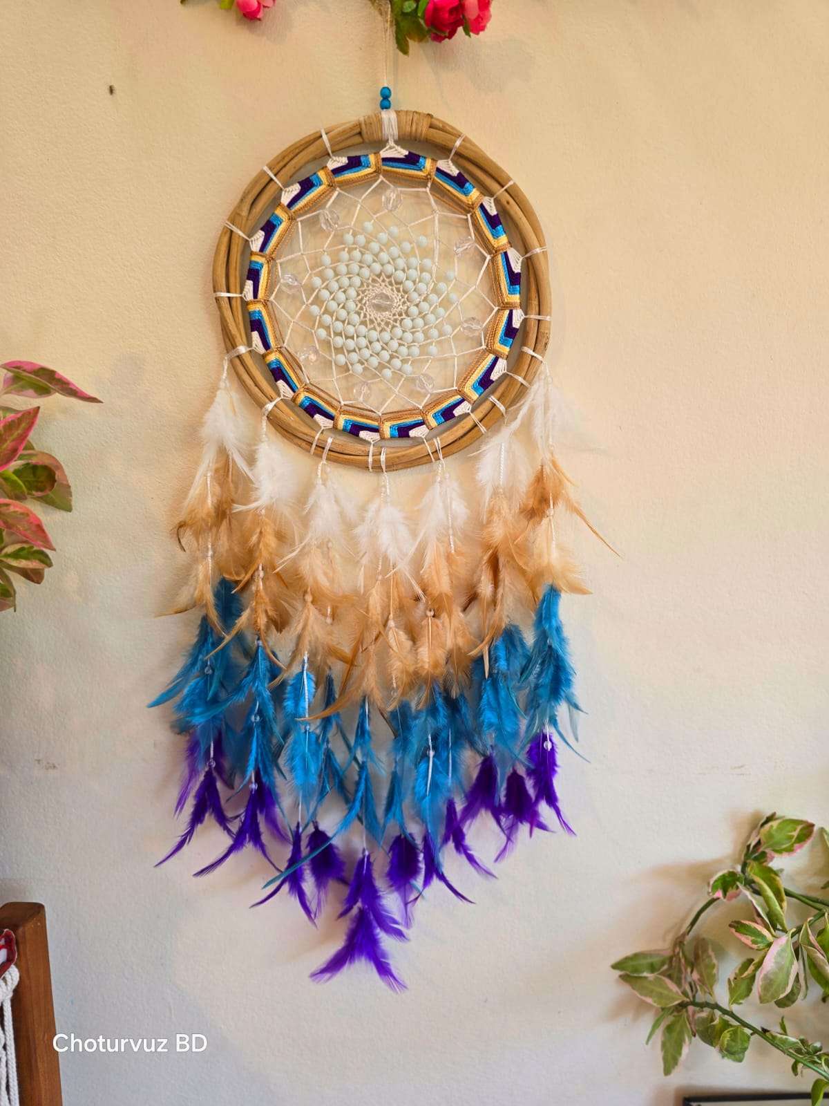 Crafted by skilled Crafters of “Choturvuz”. We can provide any colour and design of dream catchers. Its totally washable and easy to hang Dream catcher.
