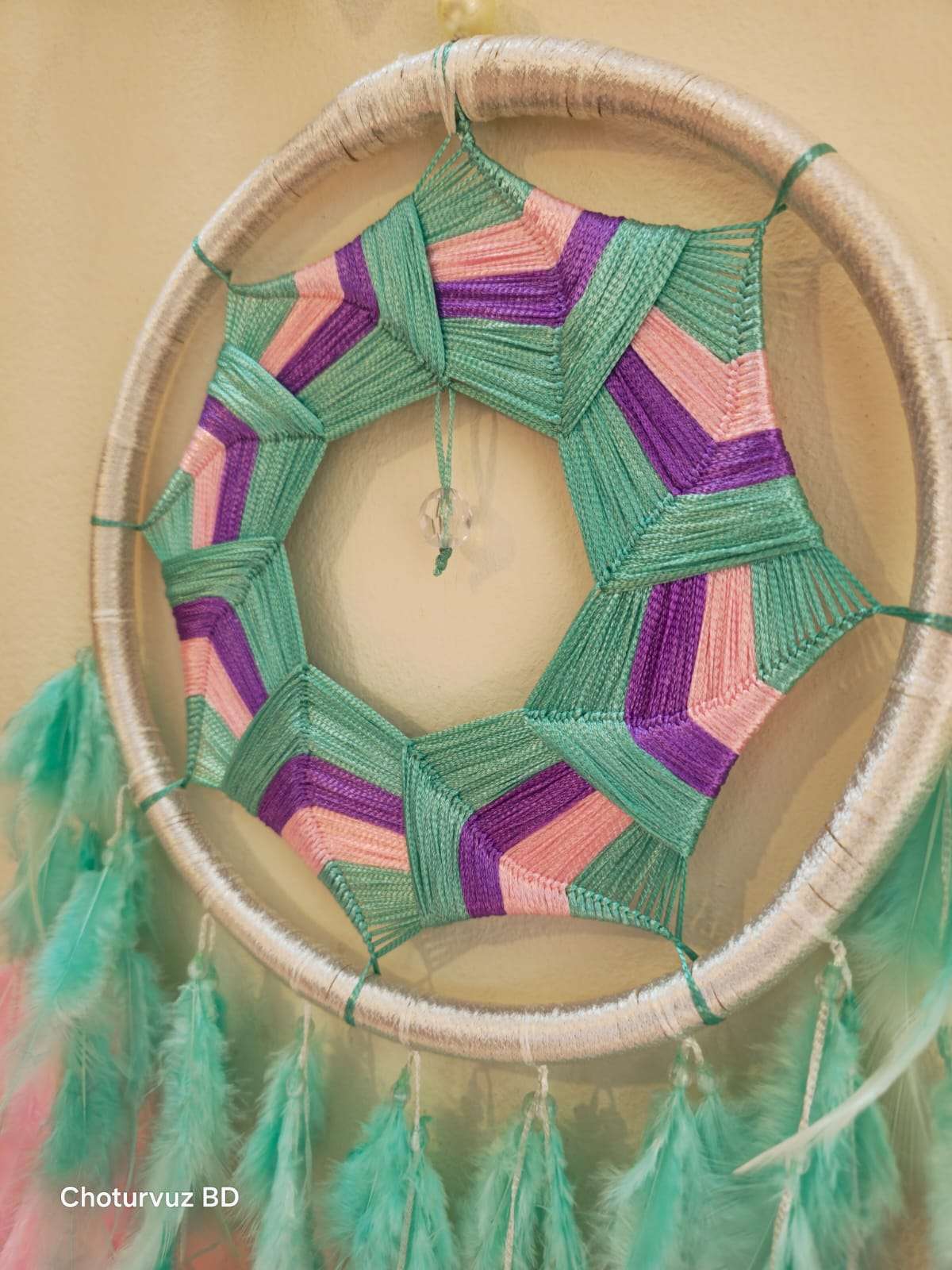 Crafted by skilled Crafters of “Choturvuz”. We can provide any colour and design of dream catchers. Its totally washable and easy to hang Dream catcher.