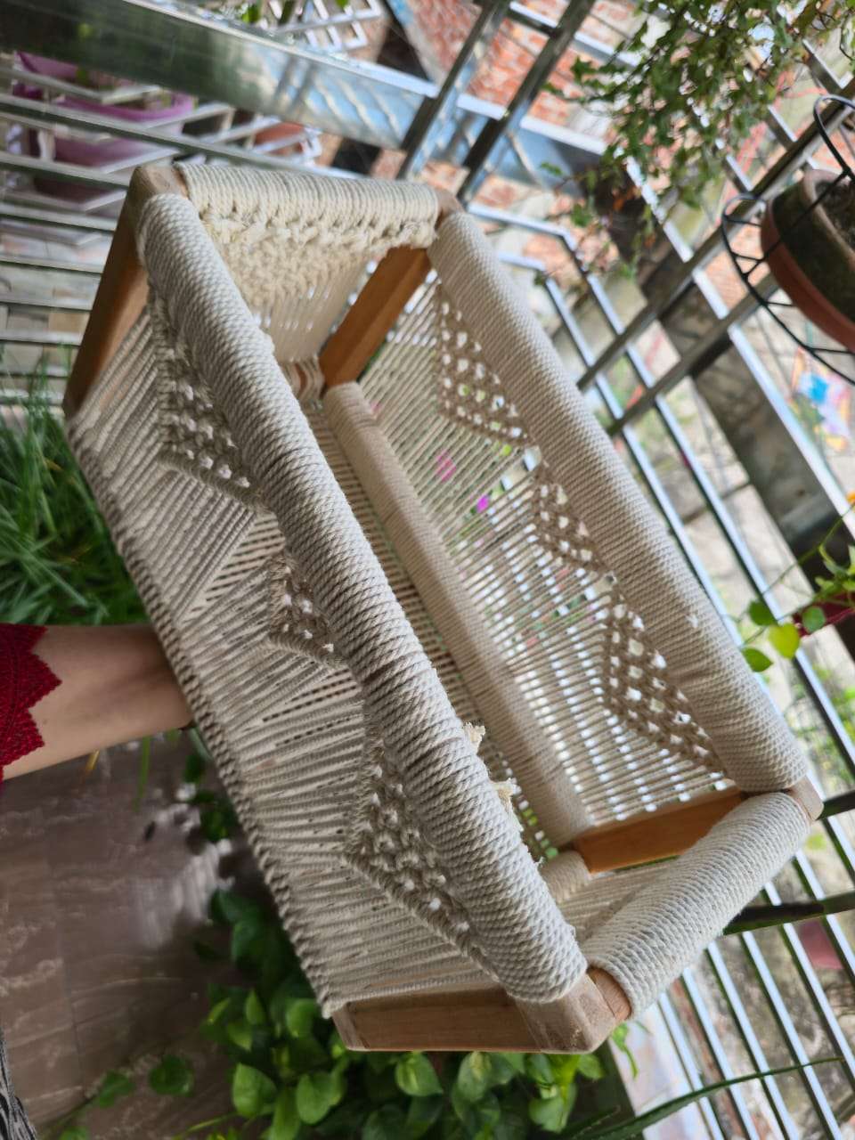 Handwoven with care, this macrame basket adds a natural, artistic touch to your home.
