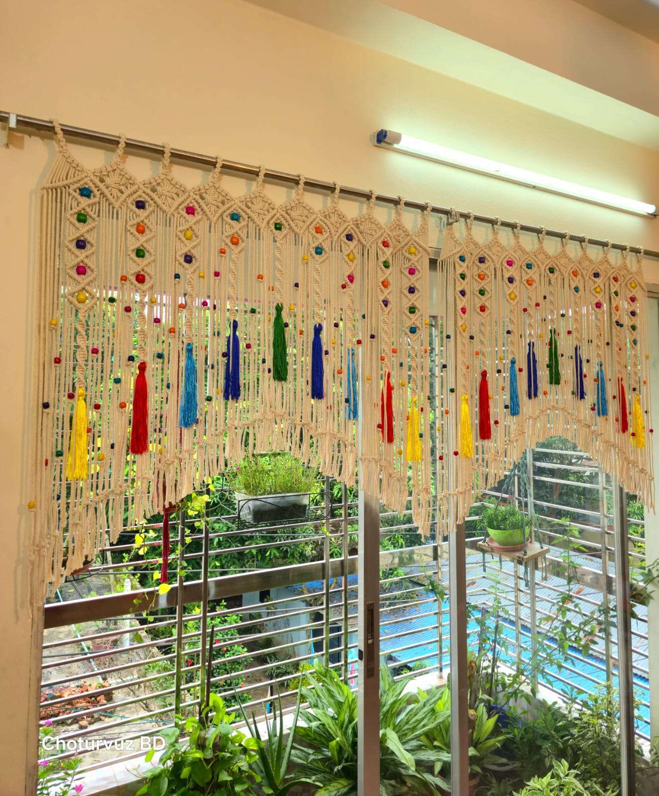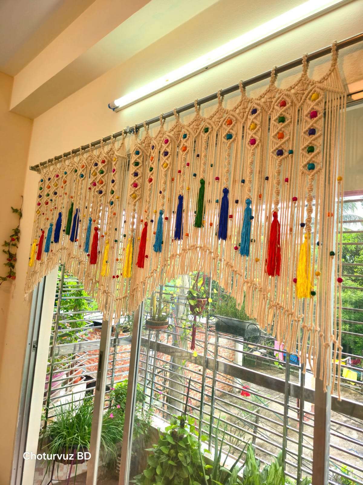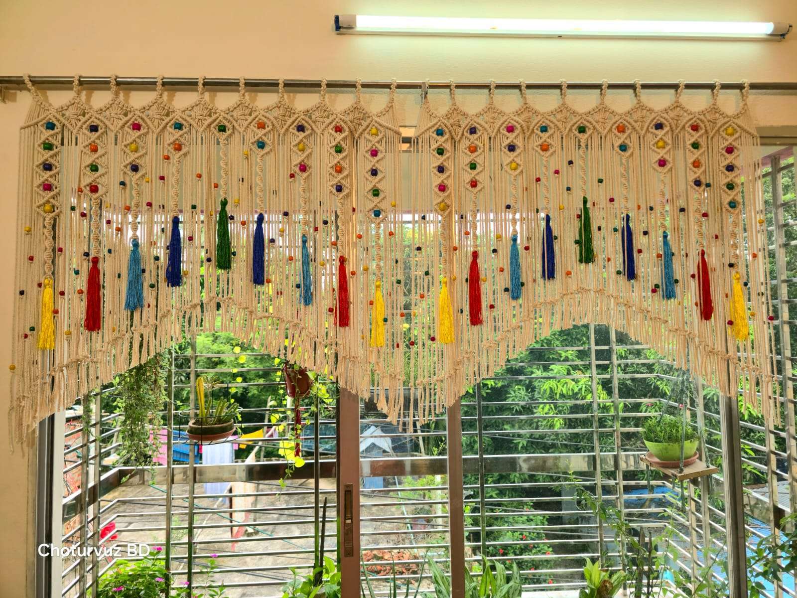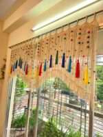 Gently brush the macrame Curtain twice a week. If it gets too dirty, wash it using shampoo or mild detergent in normal (room temperature) water. Let it dry under direct sunlight.