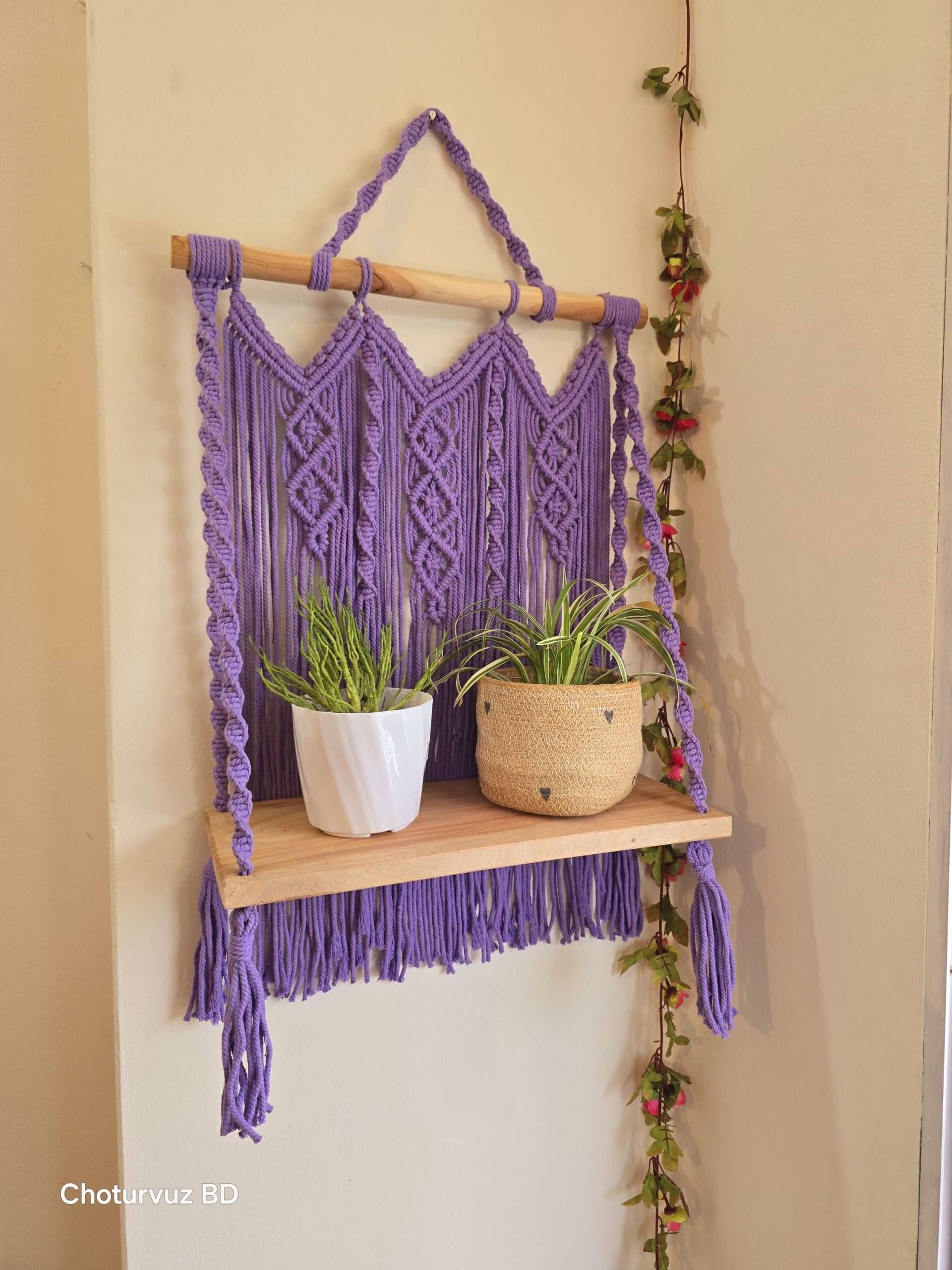 Gently brush the macrame shelf twice a week. If it gets too dirty, wash it using shampoo or mild detergent in normal (room temperature) water. Let it dry under direct sunlight.
