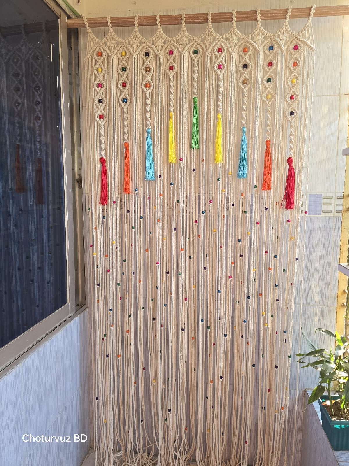 Macrame curtain.
